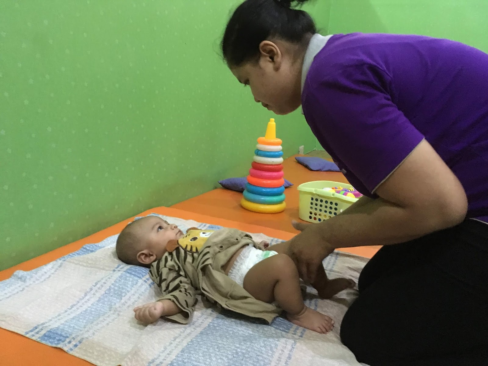 Setelah baby swim, dilanjut dengan baby massage (enak kali hidupmu nak, haha). Disediakan juga timbangan dan meteran buat ukur berat badan dan panjang bayi ya.