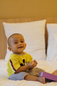 Susah2 gampang ya ngajak Skye acting, hahaha. Untung dia sumeh anaknya jadi gampang disuruh ketawa. Apalagi disuruh makan, disodorin biskuitnya langsung mangap doi. Scene 1 diambil di kamar hotel. Kami ambil scene1 ini pas sore2 baru nyampe hotel langsung shoot, hehe. Scene selanjutnya scene outdoor yang kami ambil keesokan harinya setelah breakfast. Ada beberapa spot dalam scene outdoor ini. Tantangannya adalah membuat Skye tetep fokus ke kamera, hahaha.