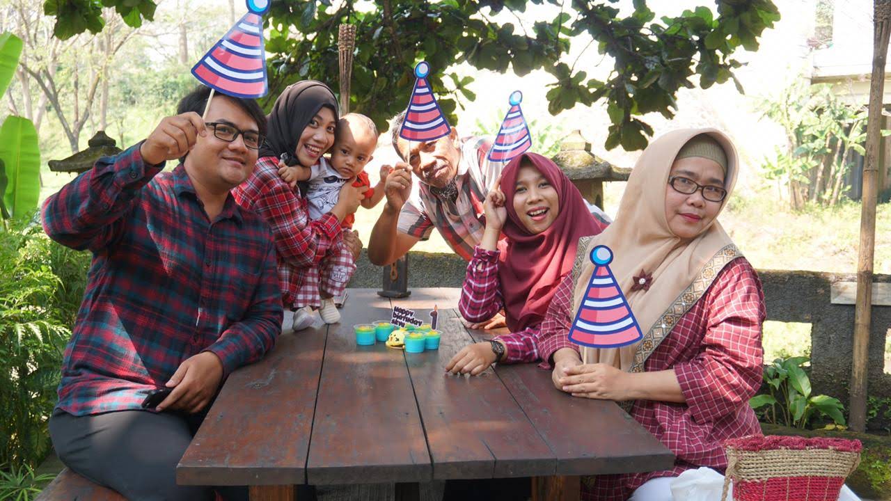 Untuk mensyukuri usia Skye yang sudah 12 bulan ini, aku ngadain syukuran (makan2) bersama orang tua dan adikku. Setelah berdiskusi, kami memutuskan makan2 di Taman Indie Resto Malang. Tempatnya luas banget dan family friendly. Kita bisa memilih indoor atau outdoor yang berupa gubug2 dengan pemandangan sawah atau sungai. Di dekat Taman Indie, ada lapangan golfnya juga, jadi cukup menyegarkan mata dengan melihat pemandangan alam, hehe.