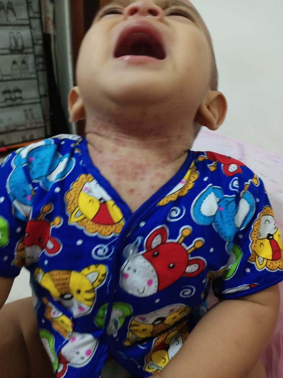 Seminggu sudah berlalu, gatel di leher sudah berangsur hilang, tapi anehnya muncul bintik2 merah lain di paha, kaki, lengan, muka, punggung bahkan bagian vital. Sebelumnya aku memang dapat Whatsapp dari pengasuhnya Skye di Day Care yang menginfokan kalau di tempat Skye dititipkan itu lagi wabah cacar air. Aku sama sekali ga curiga Skye kena cacar air karena Skye ga demam, ga mual, dan ga rewel.