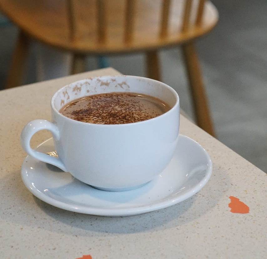 Tetiba, datenglah hot chocolate. Sungguh aku terperana karena cangkirnya tuh gede, lebih gede ketimbang cangkir biasa gitu ya. Rasanya sih biasa aja, hahaha.