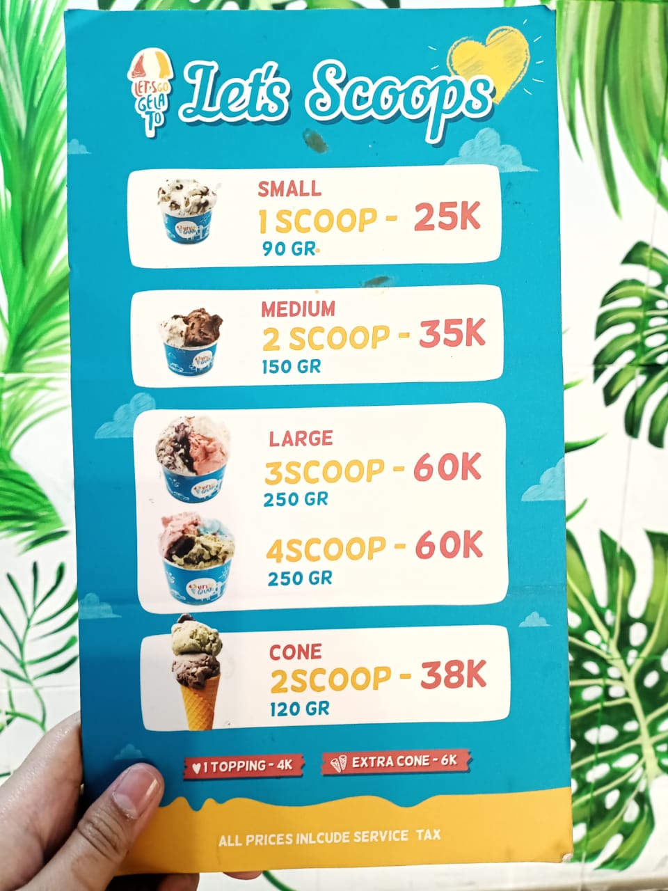 Harganya cukup ramah kantong. Untuk yang cup, 1 scoop-nya cuma 25K aja, sedangkan yang cone 38K.