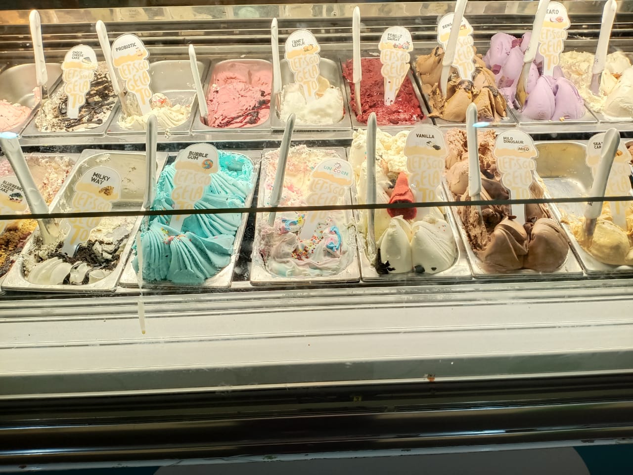 Hari ini Skye nyobain cafe baru di Surabaya yang kebetulan deket rumah. Let’s Go Gelato, sesuai dengan namanya main businesscafe ini adalah menjual berbagai macam gelato. Dari rasa yang mainstream sampe rasa yang antimainstream semacam rasa thai tea atau rasa probiotic, hihihi. Lokasinya ada di Jl. Dr. Ir. H. Soekarno No.398, Merr Surabaya. Buka dari jam 10 pagi sampai 10 malam. Letaknya ada di pinggir jalan utama, sebelahan persis sama Newboss. Tulisannya juga gede banget, jadi gampnag dicari. Di google maps juga udah ada kok.